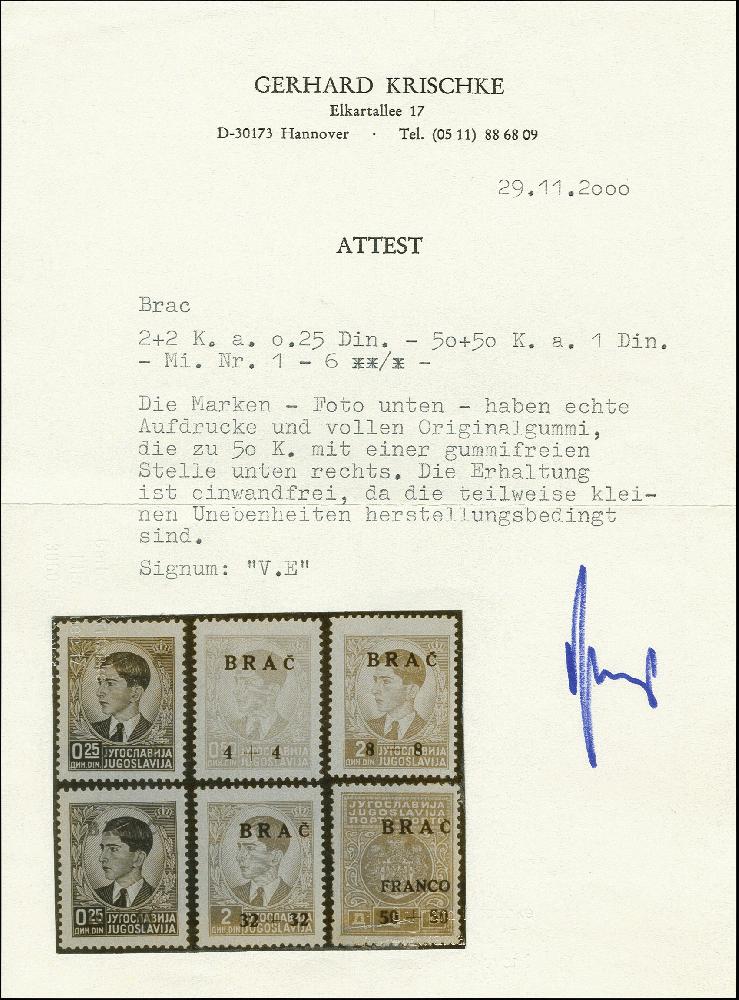| Zusatzinformationen und Suchstichworte: | 366. Auktion Heinrich Köhler Auktionstermin 19.-24.03.2018 Los 2125 1944, Insel-Nothilfe 2-50 K. kpl, postfrisch bzw. Mi.-Nr. VI ungebraucht mit kleinen Gelbflecken, sonst tadellos, sign.V.E. und Fotoattest Krischke (2000) (Mi. 2.100) Zuschlag 850,00 EUR |
