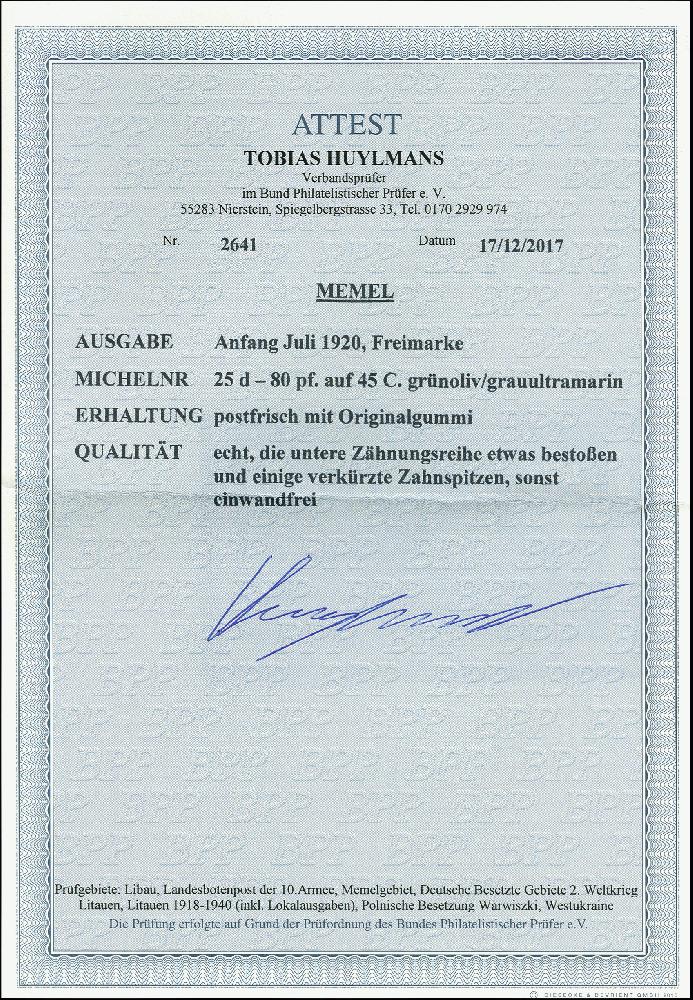 | Prüfer: | Huylmans, Tobias (BPP (Bund Philatelistischer Prüfer)) |