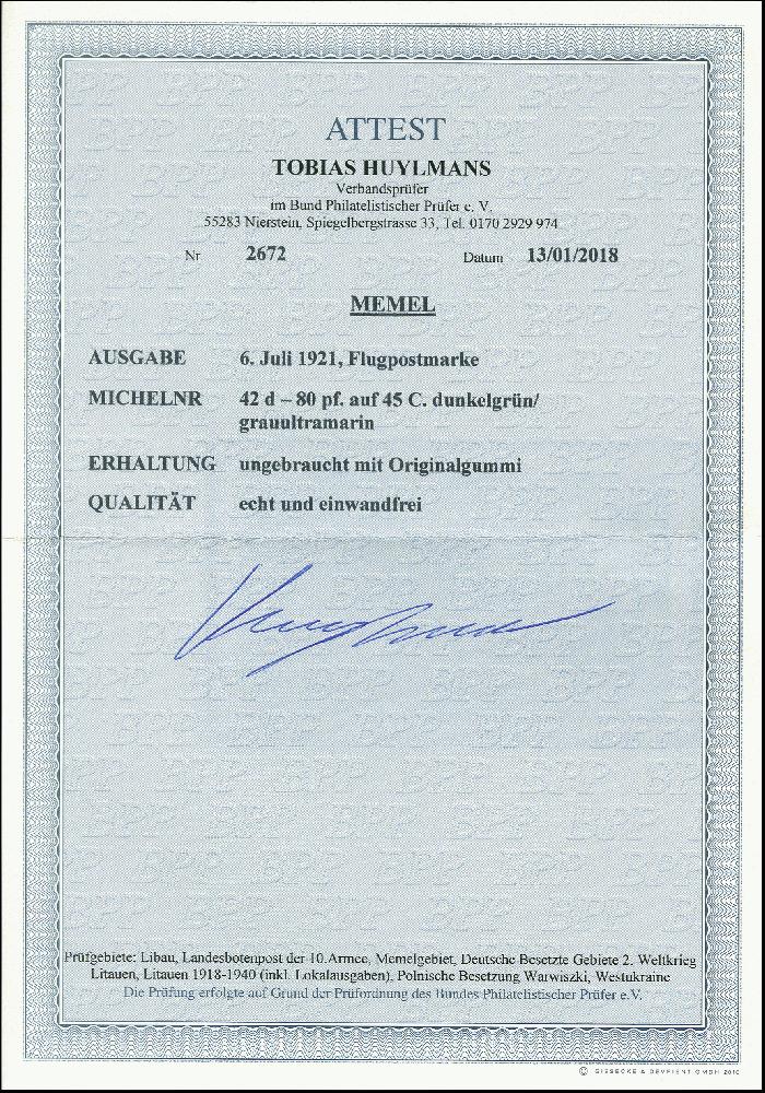 | Prüfer: | Huylmans, Tobias (BPP (Bund Philatelistischer Prüfer)) |