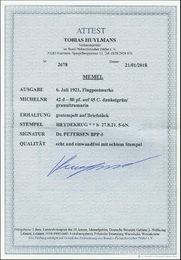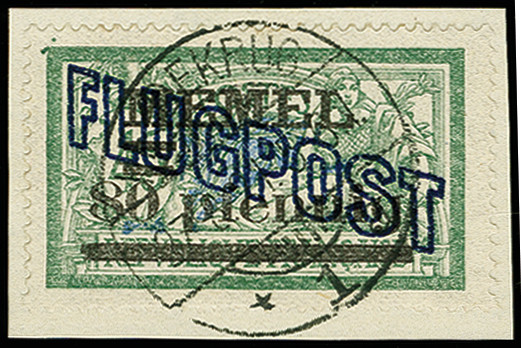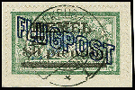 | Zusatzinformationen und Suchstichworte: | 366. Auktion Heinrich Köhler Auktionstermin 19.-24.03.2018 Los 2044 1921, Flugpost 80 pf. auf 45C. dunkelgrün/grauultramarin auf GC-Papier b, sauber gestempelt auf Briefstück, tadellos, sign. Dr. Petersen BPP und Fotoattest Huylmans BPP (2018) Zuschlag 440,00 EUR |