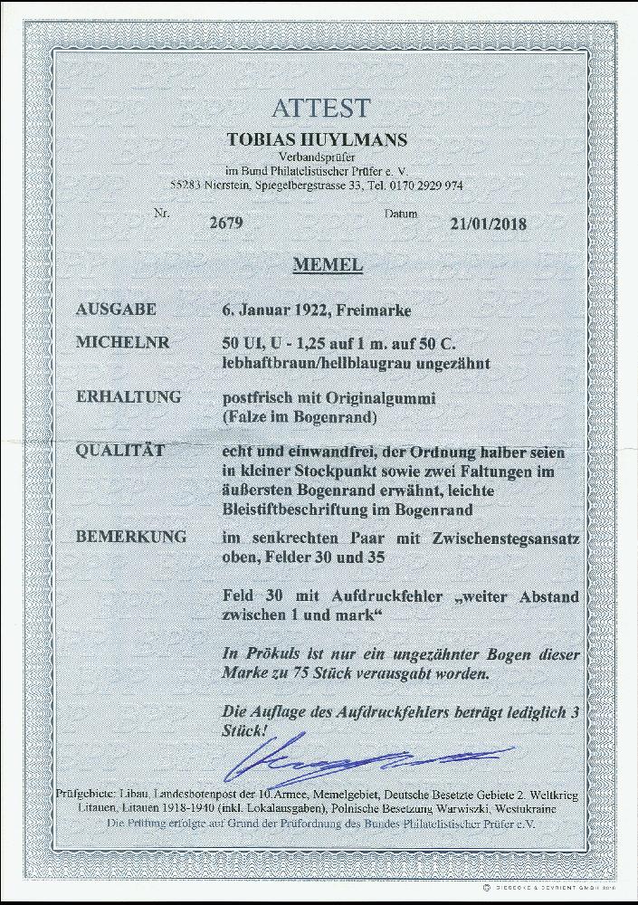 | Prüfer: | Huylmans, Tobias (BPP (Bund Philatelistischer Prüfer)) |