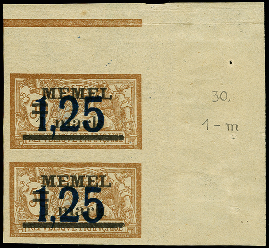 | Zusatzinformationen und Suchstichworte: | 366. Auktion Heinrich Köhler Auktionstermin 19.-24.03.2018 Los 2047 1922, 1,25 auf 1m auf 50 C., ungezähntes senkrechtes Paar aus der rechten oberen Bogenecke, die mit Aufdruckfehler "weiter Abstand zwischen 1 und mark", sehr selten, es gibt nur 3 ungezähnte Marken mit diesem Aufdruckfehler, postfrisch bzw. Falzreste im Bogenrand, im äußersten Bogenrand zwei waagerechte Falten und minimaler Stockpunkt, tadellos, ein der ganz großen Seltenheiten, Fotoatteste Petersen BPP (1987) und Huylmans BPP (2018) Zuschlag 2.800,00 EUR |
