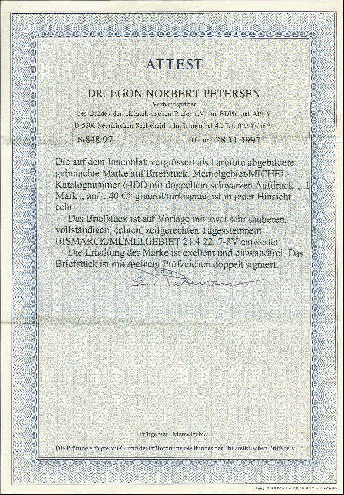 | Prüfer: | Petersen, Egon Norbert (BPP (Bund Philatelistischer Prüfer)) |