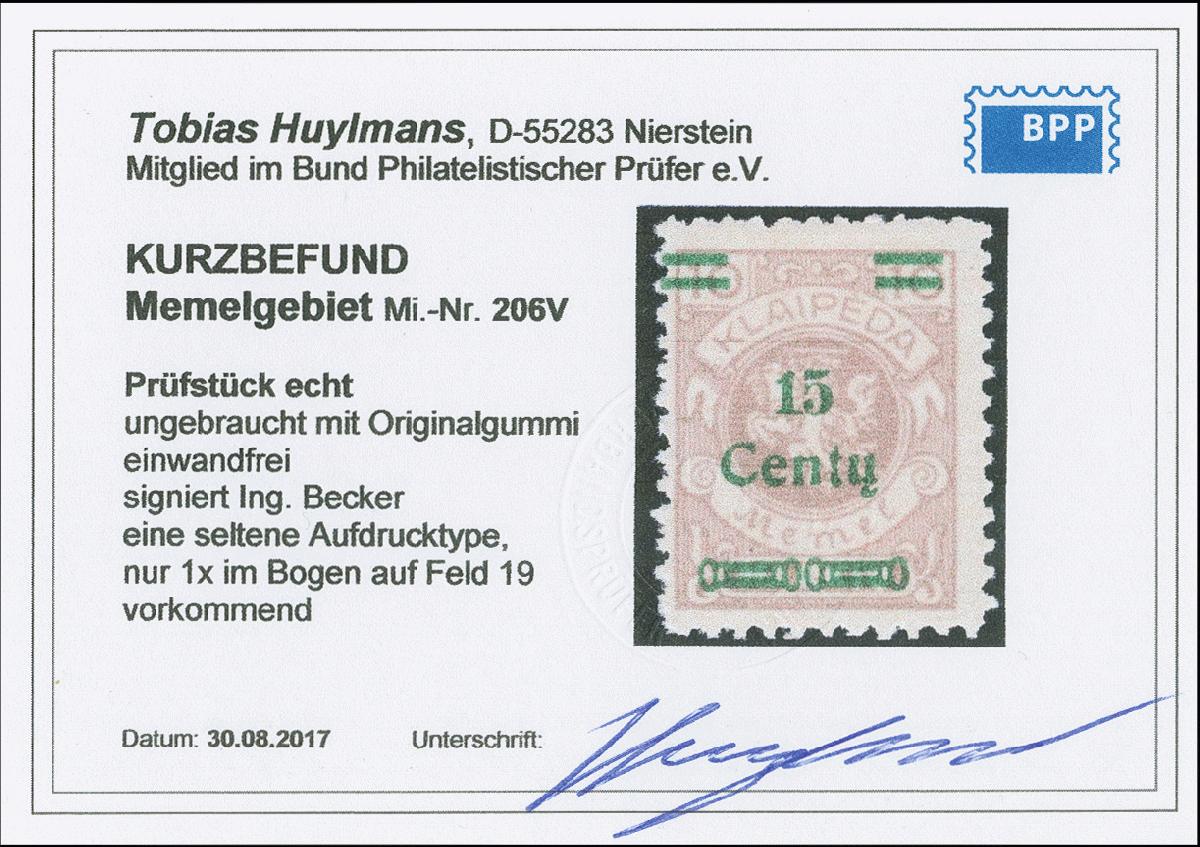 | Prüfer: | Huylmans, Tobias (BPP (Bund Philatelistischer Prüfer)) |