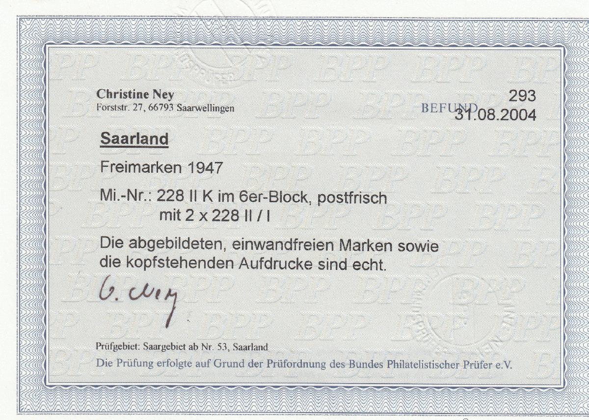 | Prüfer: | Ney, Christine (BPP (Bund Philatelistischer Prüfer)) |