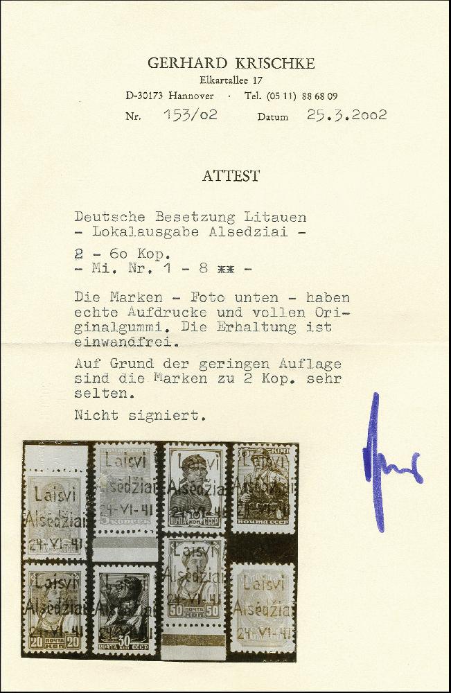 | Prüfgebiet: | Deutsche Besetzung WK 2 Litauen Alsedziai |