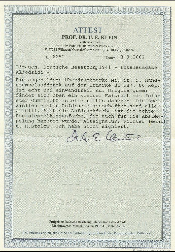 | Prüfgebiet: | Deutsche Besetzung WK 2 Litauen Alsedziai |