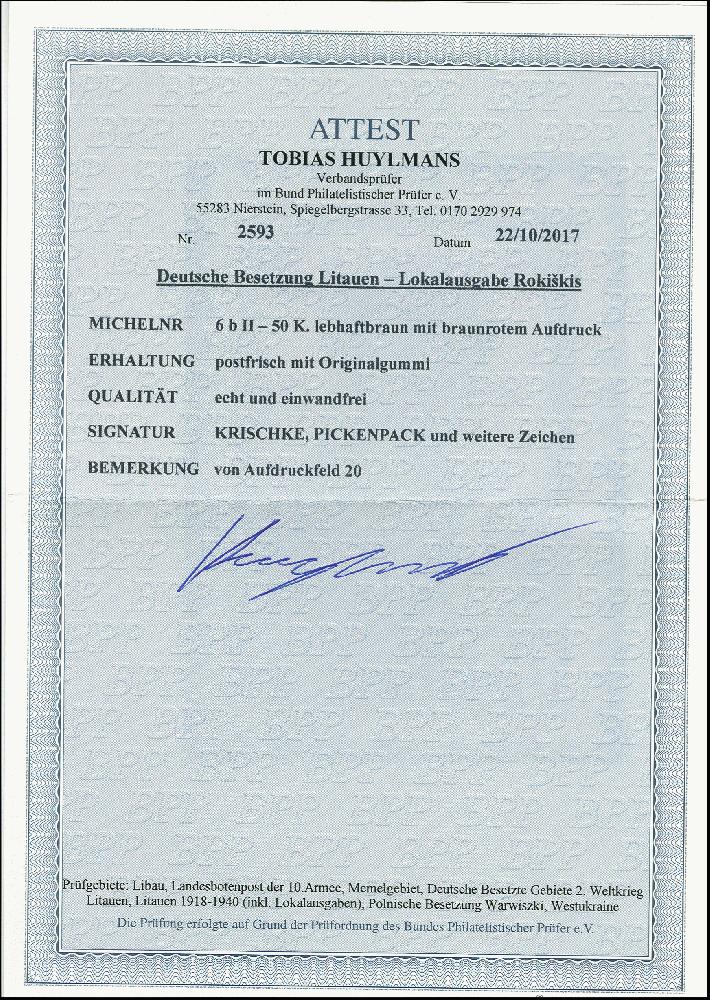 | Prüfgebiet: | Deutsche Besetzung WK 2 Litauen Rokiskis |