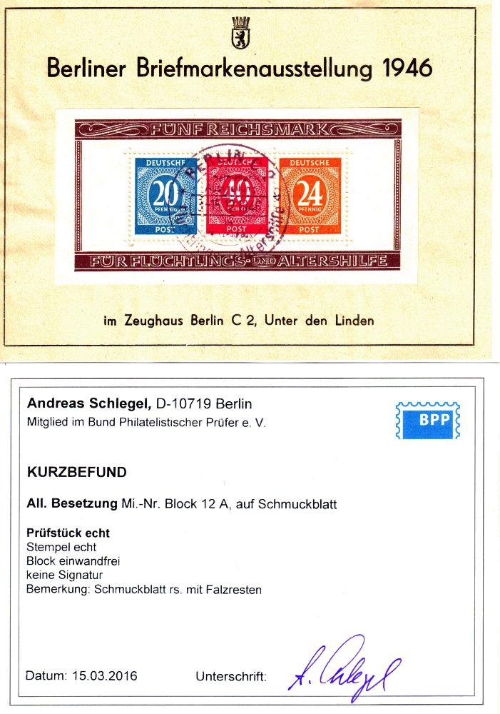 | Prüfgebiet: | Alliierte Besetzung Gemeinschaftsausgaben Blocks |