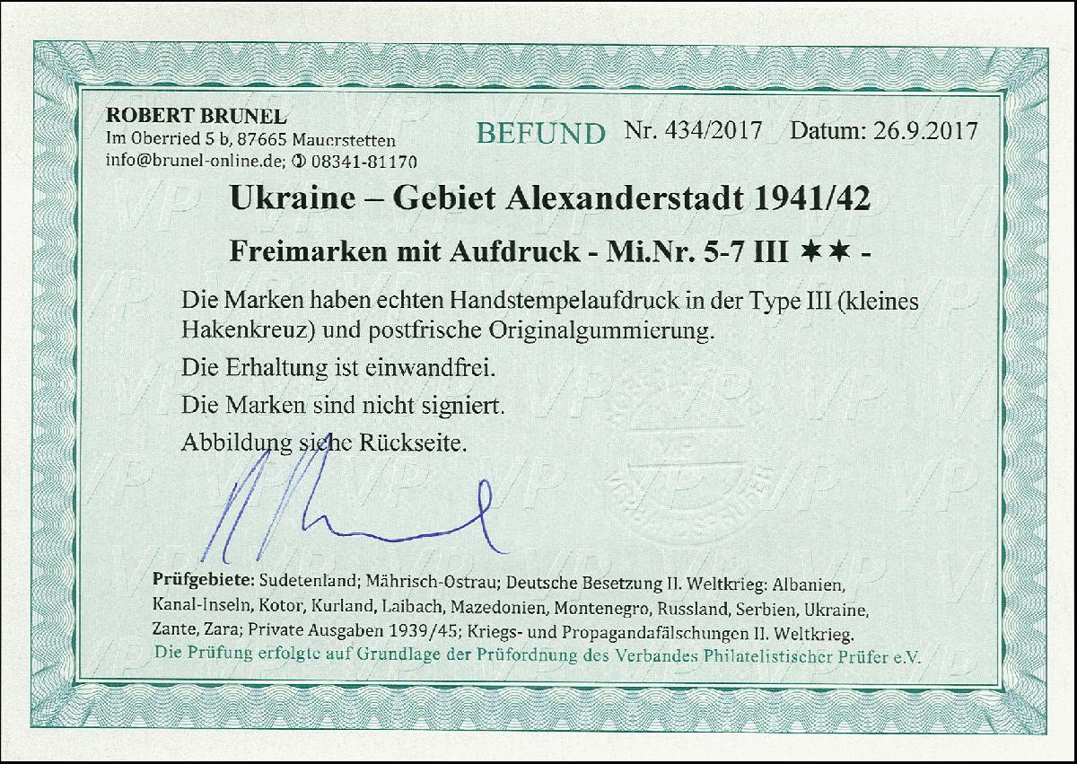 | Prüfgebiet: | Deutsche Besetzung WK 2 Ukraine Alexanderstadt |