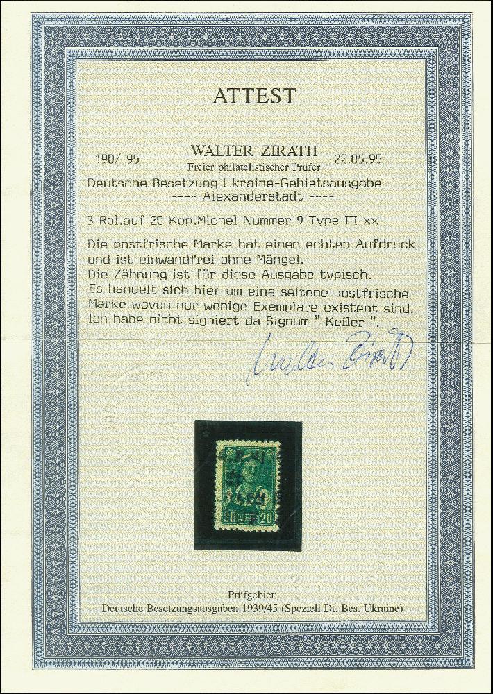 | Prüfgebiet: | Deutsche Besetzung WK 2 Ukraine Alexanderstadt |