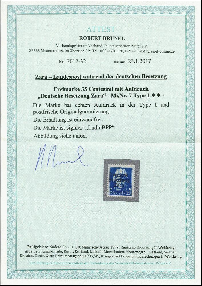 | Prüfgebiet: | Deutsche Besetzung WK 2 Zara |