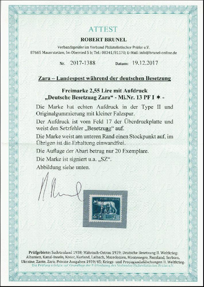 | Prüfgebiet: | Deutsche Besetzung WK 2 Zara |