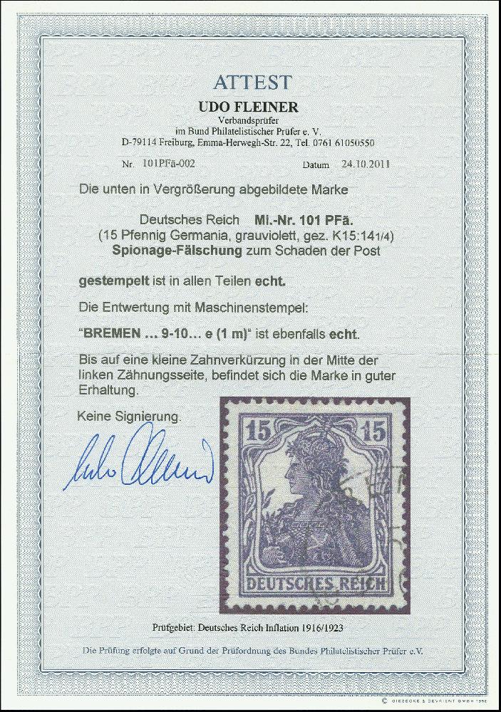 | Prüfgebiet: | Deutsches Reich Kriegs- und Propagandafälschungen 1914-1918 |
