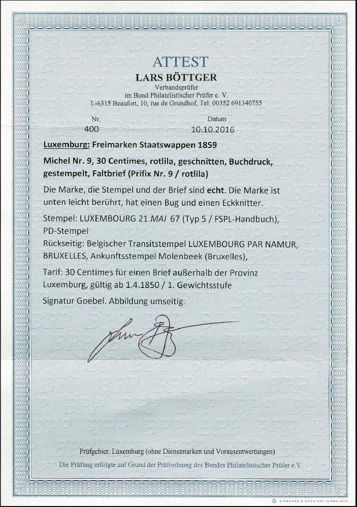 | Prüfer: | Böttger, Lars (BPP (Bund Philatelistischer Prüfer)) |