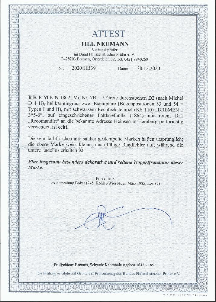 | Prüfer: | Neumann, Till (BPP (Bund Philatelistischer Prüfer)) |