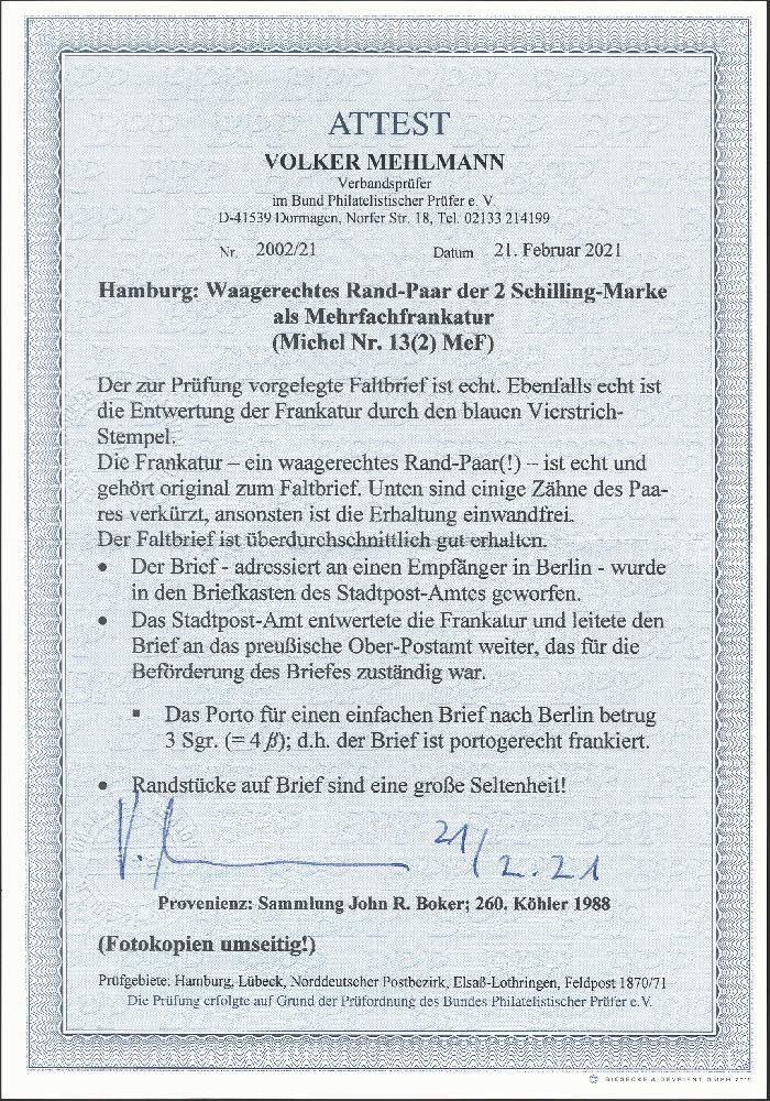 | Prüfer: | Mehlmann, Volker (BPP (Bund Philatelistischer Prüfer)) |