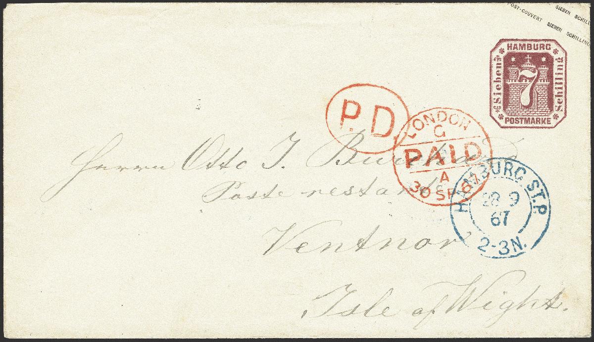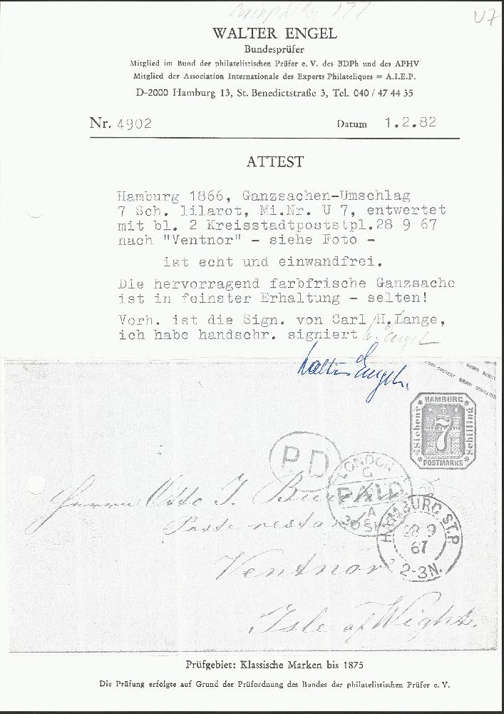 | Zusatzinformationen und Suchstichworte: | 376. Auktion Heinrich Köhler 19.-24. April 2021 Los 74 Umschlag 7 Schilling lilarot mit sauber nebengesetztem blauen Doppelkreisstempel "HAMBURG ST.P. 28 9 67" und nebengesetztem roten Durchgangsstempel von London nach Ventnor auf der Isle of Wight mit rückseitigem Ankunftsstempel vom 30.9. Sehr schöne frische und einwandfreie Erhaltung. Fotoattes Mehlmann BPP (2021) Ausruf 500,00 EUR Zuschlag 2.300,00 EUR (aus der Sammlung Erivan Haub) |