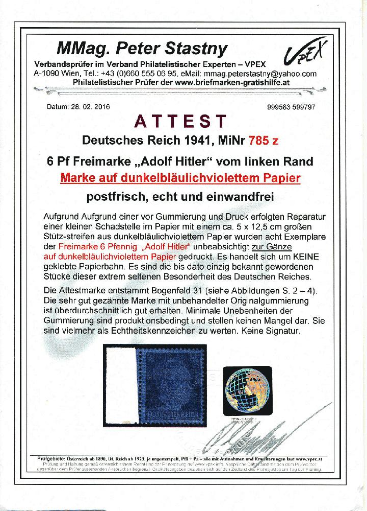 | Prüfgebiet: | Deutsches Reich 1933 - 1945 (Mi-Nr. 479 - 910) |