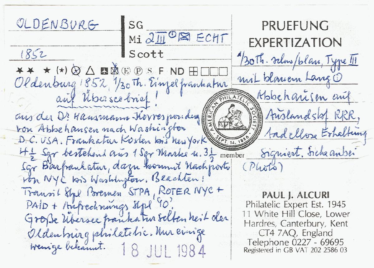 | Prüfgebiet: | Altdeutschland Oldenburg |