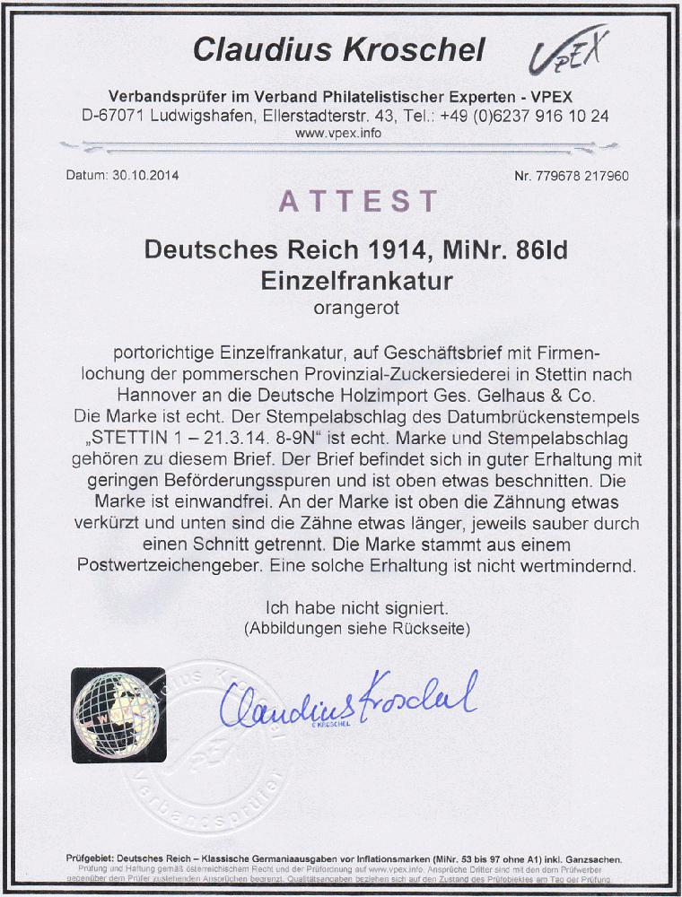 | Prüfer: | Kroschel, Claudius (VPEX (Verband Philatelistischer Experten)) |