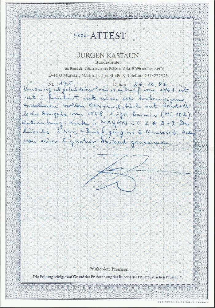 | Prüfer: | Kastaun, Jürgen (BPP (Bund Philatelistischer Prüfer)) |