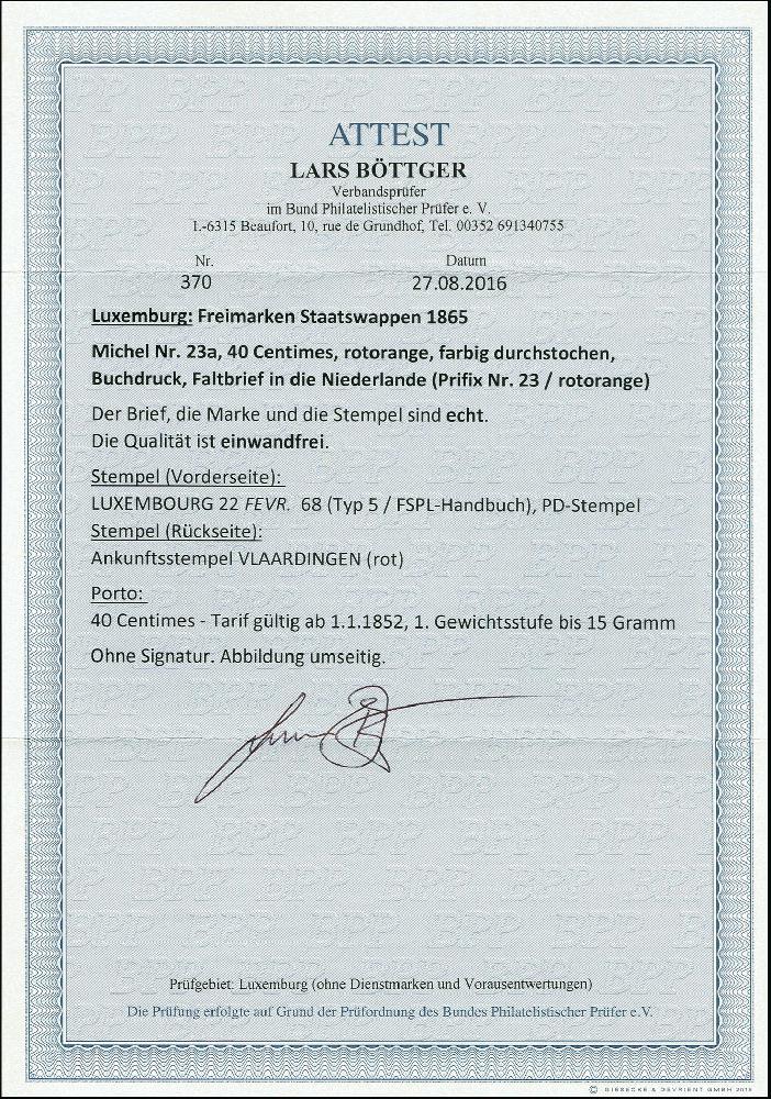 | Prüfer: | Böttger, Lars (BPP (Bund Philatelistischer Prüfer)) |