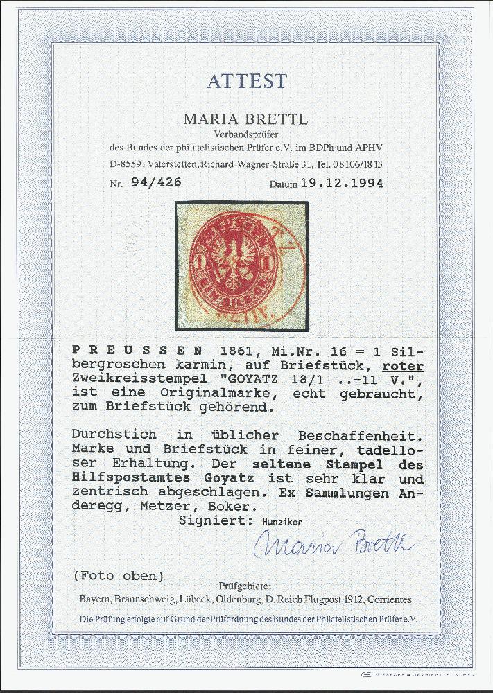 | Prüfer: | Brettl, Maria (BPP (Bund Philatelistischer Prüfer)) |