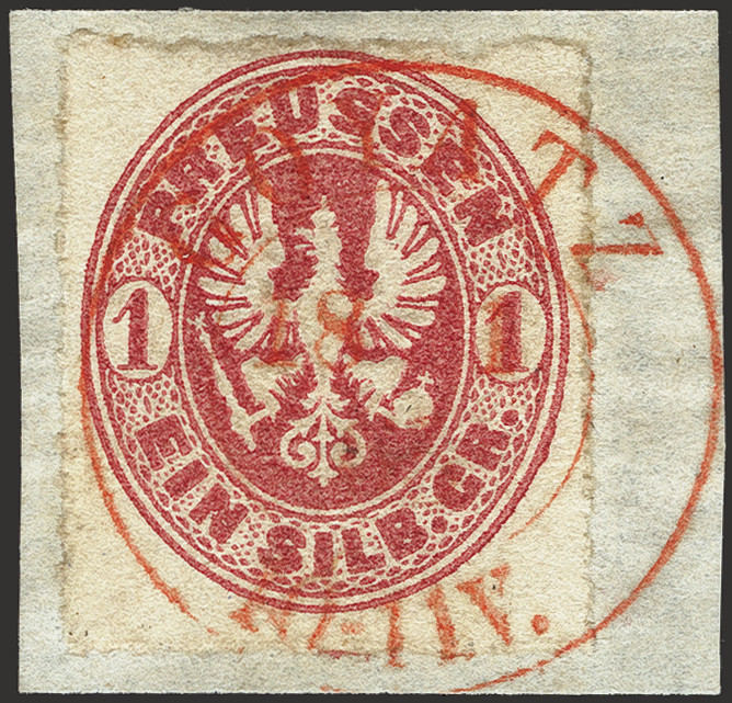 | Zusatzinformationen und Suchstichworte: | 376. Auktion Heinrich Köhler 19.-24. April 2021 Los 254 "GOYATZ 18/1 ..", der rote Doppelkreisstempel klar und gerade auf Wappen 1 Silbergroschen rosa auf kleinem Briefstück, Pracht. Mehrfach signiert und Fotoatteste Bringmann BPP (1992) und Brettl BPP (1994) Ausruf 200,00 EUR Zuschlag 460,00 EUR (aus der Sammlung Erivan Haub) |