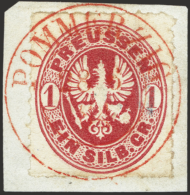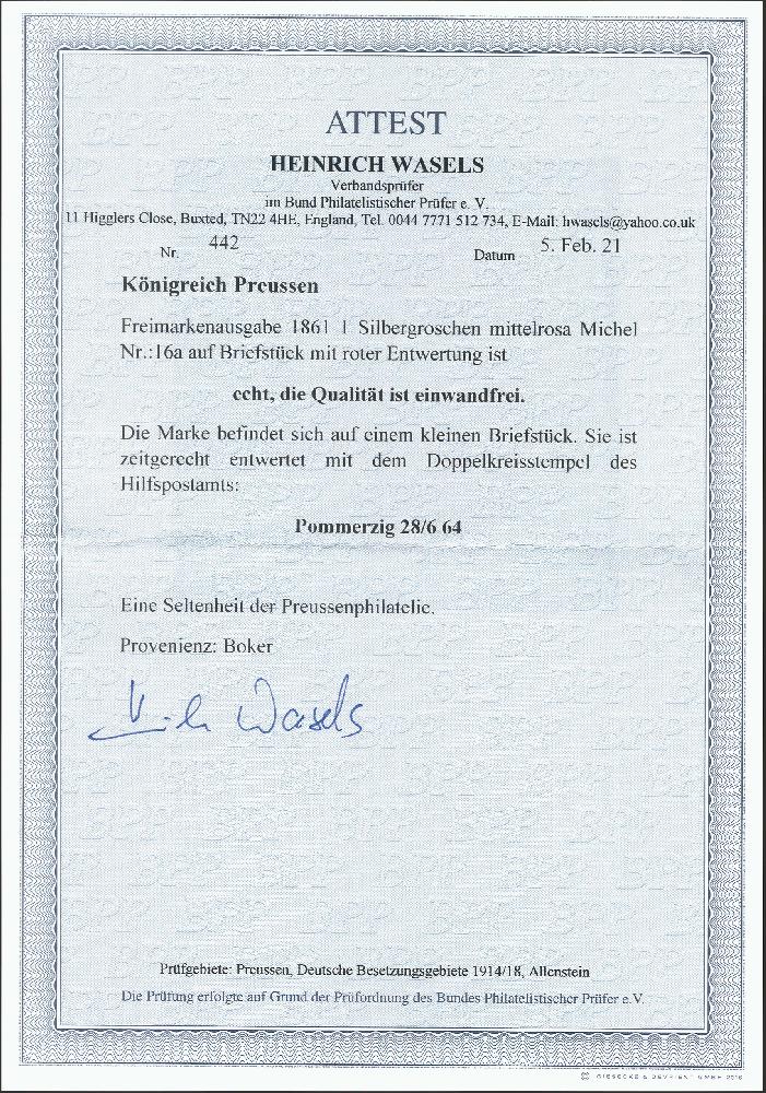 | Zusatzinformationen und Suchstichworte: | 376. Auktion Heinrich Köhler 19.-24. April 2021 Los 255 "POMMERZIG 28/6 64" zentrisch und klar auf Adler 1 Silbergroschen rosa auf kleinem Briefstück, Kabinett. Fotoattest Wasels BPP (2021) Ausruf 200,00 EUR Zuschlag 560,00 EUR (aus der Sammlung Erivan Haub) |