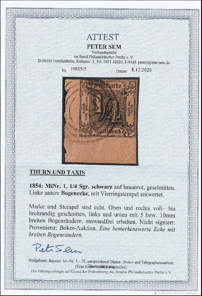 | Prüfgebiet: | Altdeutschland Thurn und Taxis |