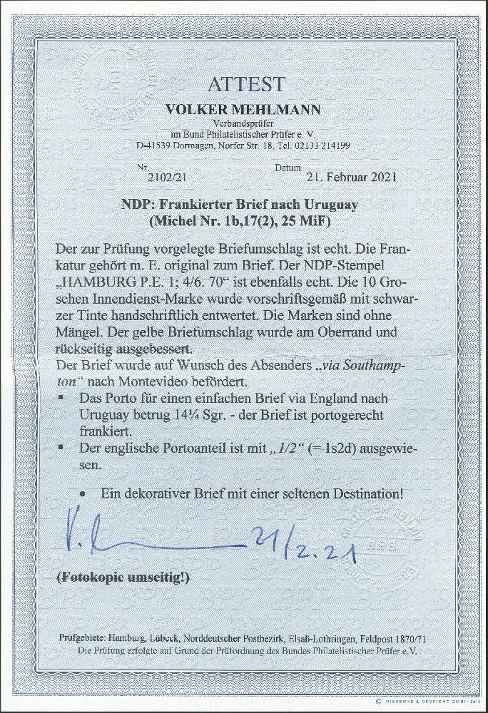 | Prüfgebiet: | Norddeutscher Postbezirk 1868 - 1871 |