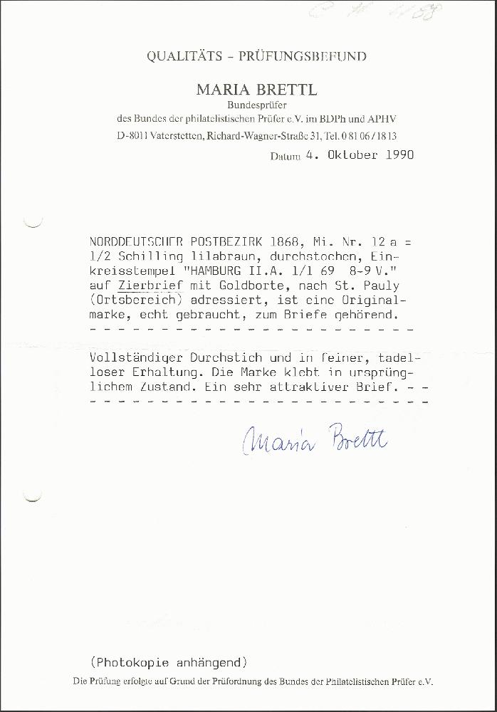 | Prüfgebiet: | Norddeutscher Postbezirk 1868 - 1871 |