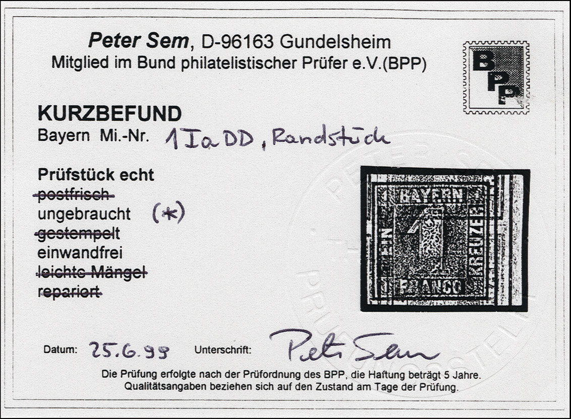 | Prüfer: | Sem, Peter (BPP (Bund Philatelistischer Prüfer)) |