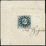 | Zusatzinformationen und Suchstichworte: | 376. Auktion Heinrich Köhler 19.-24. April 2021 Los 7027 3 Kreuzer blau, Platte 2 mit rotem Gummi von Altötting, farbfrisch und voll- bis meist breitrandig mit zentrisch und klar aufgesetztem gMR "7" auf großem Briefstück, Kabinett, Fotoattest Sem BPP (2000) Zuschlag 460,00 EUR |