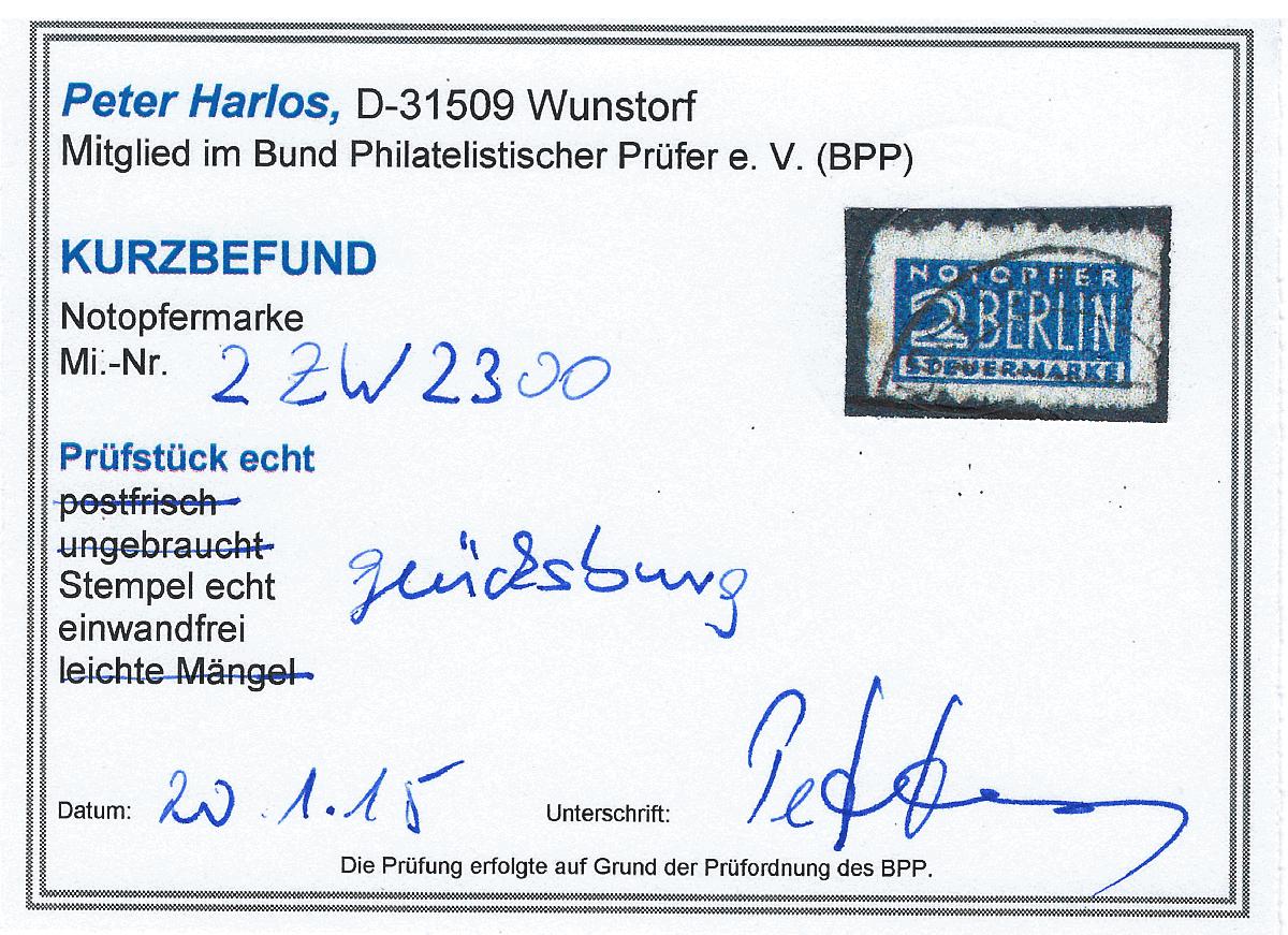| Prüfgebiet: | Alliierte Besetzung Notopfer- und Wohnungsbaumarken |