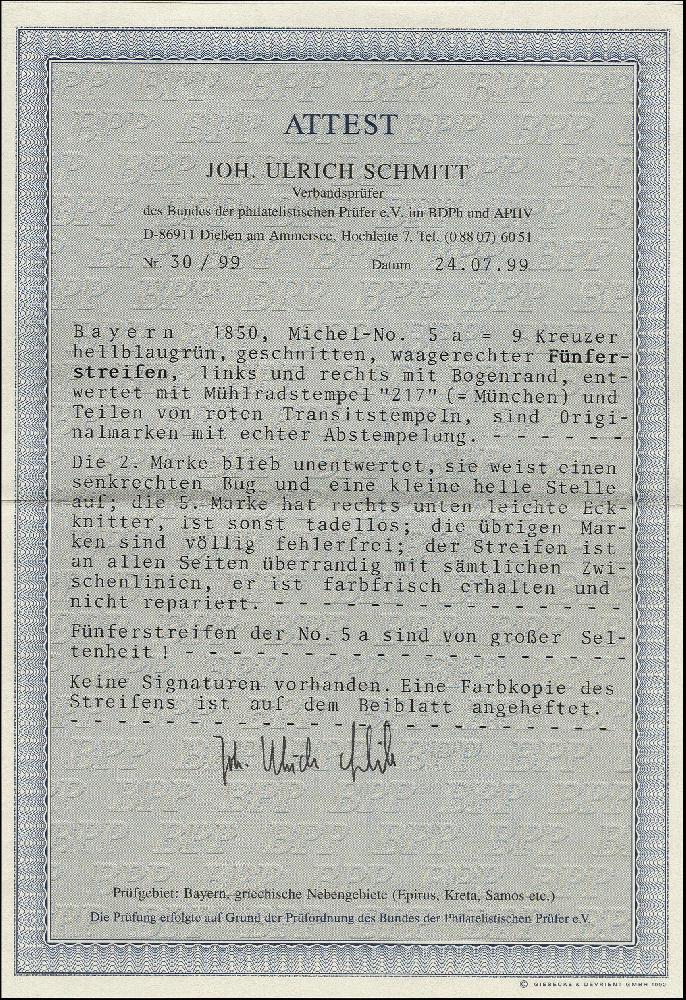 | Prüfer: | Schmitt, Joh. Ulrich (BPP (Bund Philatelistischer Prüfer)) |