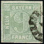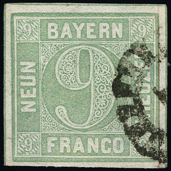 | Zusatzinformationen und Suchstichworte: | 376. Auktion Heinrich Köhler 19.-24. April 2021 Los 7048 9 Kreuzer blaugrün, Type I, farbfrisch und allseits breitrandig, der Seidenfaden ungewöhnlicherweise in der rechten Randlinie verlaufend, entwertet durch gMR, das Markenbild weitgehend sichtbar lassend. Ein seltenes und attraktives Stück in einwandfreier Erhaltung, Fotobefund Sem BPP (2006) Zuschlag 1.700,00 EUR |