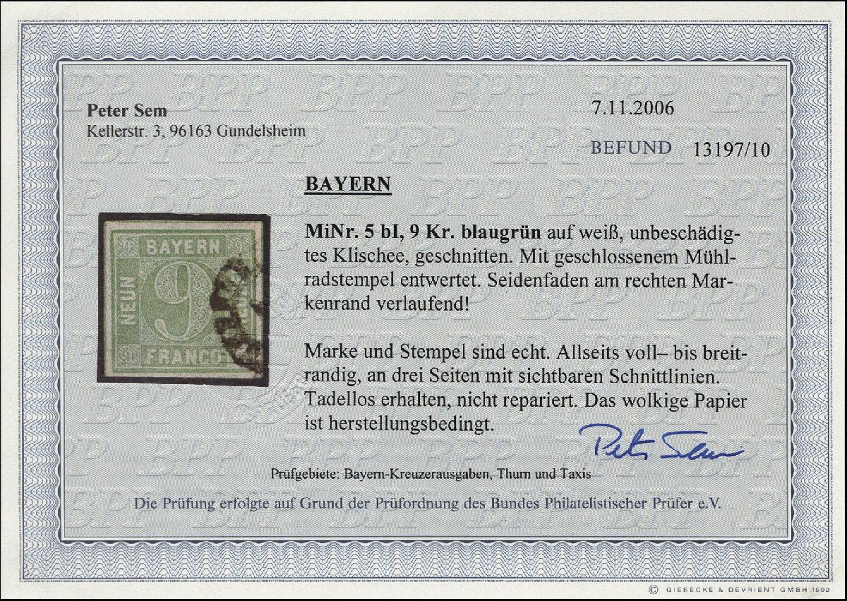 | Prüfer: | Sem, Peter (BPP (Bund Philatelistischer Prüfer)) |