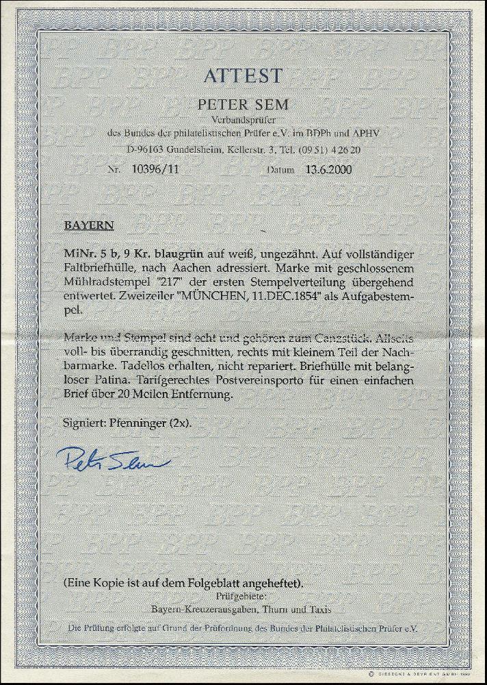 | Prüfer: | Sem, Peter (BPP (Bund Philatelistischer Prüfer)) |