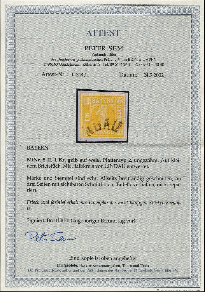 | Prüfer: | Sem, Peter (BPP (Bund Philatelistischer Prüfer)) |
