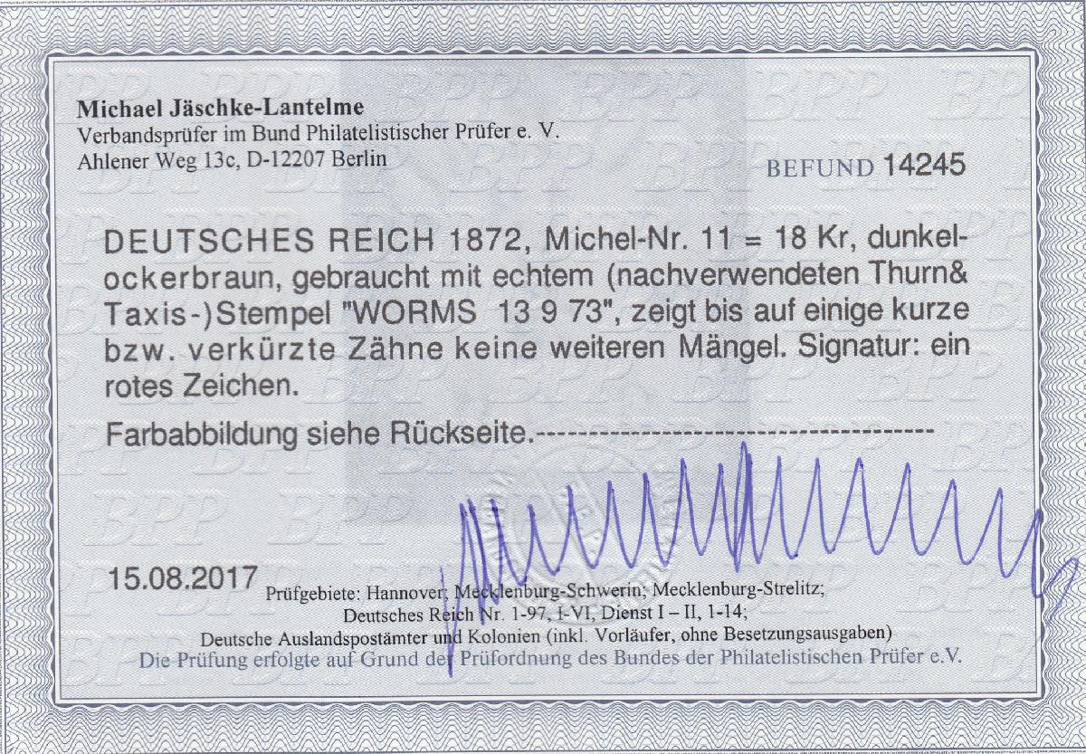 | Prüfgebiet: | Deutsches Reich 1871 - 1918 (Mi-Nr. 1 - 106) |