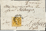 | Zusatzinformationen und Suchstichworte: | 376. Auktion Heinrich Köhler 19.-24. April 2021 Los 7071 1 Kreuzer gelb, Type II, farbfrisch und allseits breit- bis überrandig aus der linken oberen Bogenecke stammend, links mit 1/2 mm Bogenrand, mit sauber aufgesetztem DKr. "NÜRNBERG 15 DEC. 1865" auf kleinem Ortsbrief (rechts etwas verkürzt und obere Rückklappe weitgehend fehlend), die Frankatur einwandfrei. Ein attraktiver Brief mit der seltenen Marke. Fotoattest Sem BPP (2003) Zuschlag 1.800,00 EUR |
