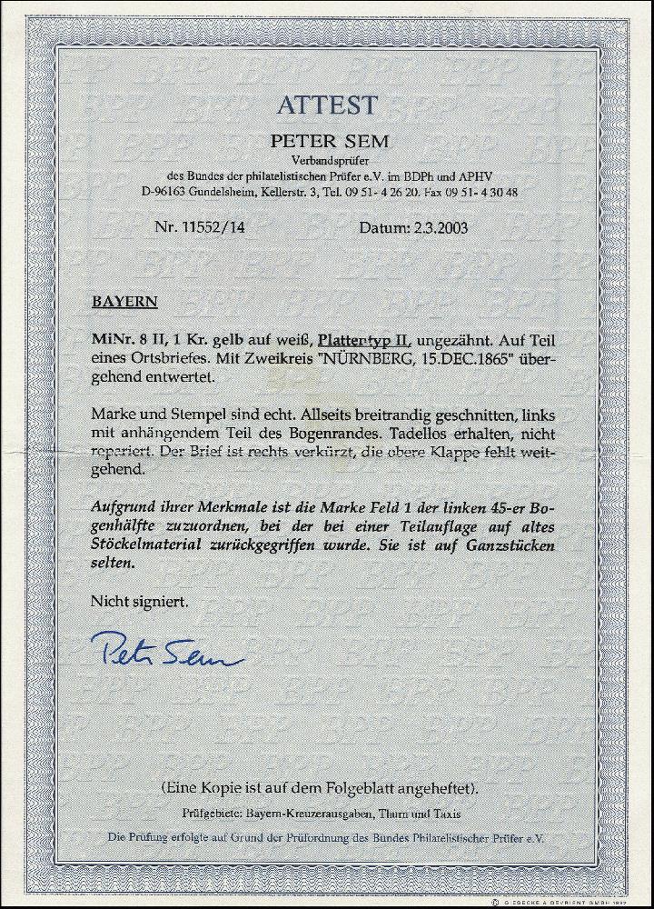 | Prüfer: | Sem, Peter (BPP (Bund Philatelistischer Prüfer)) |