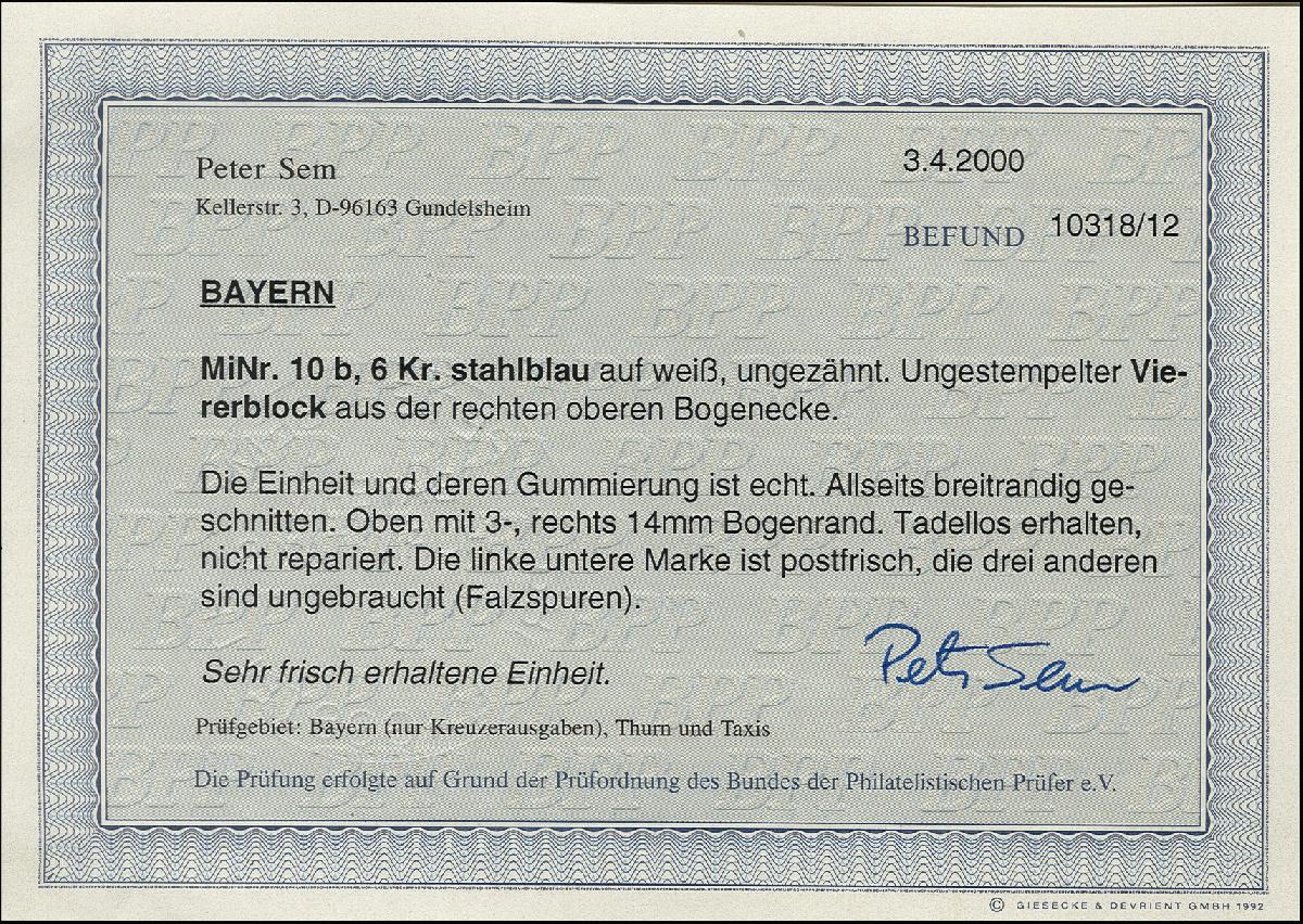 | Prüfer: | Sem, Peter (BPP (Bund Philatelistischer Prüfer)) |