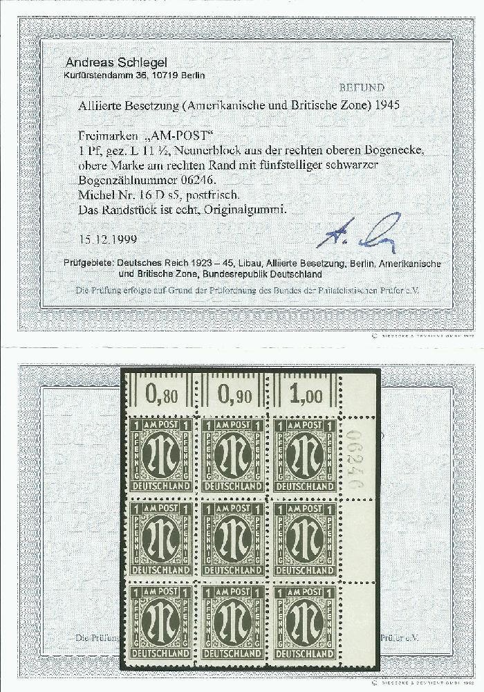 | Prüfer: | Schlegel, Andreas (BPP (Bund Philatelistischer Prüfer)) |