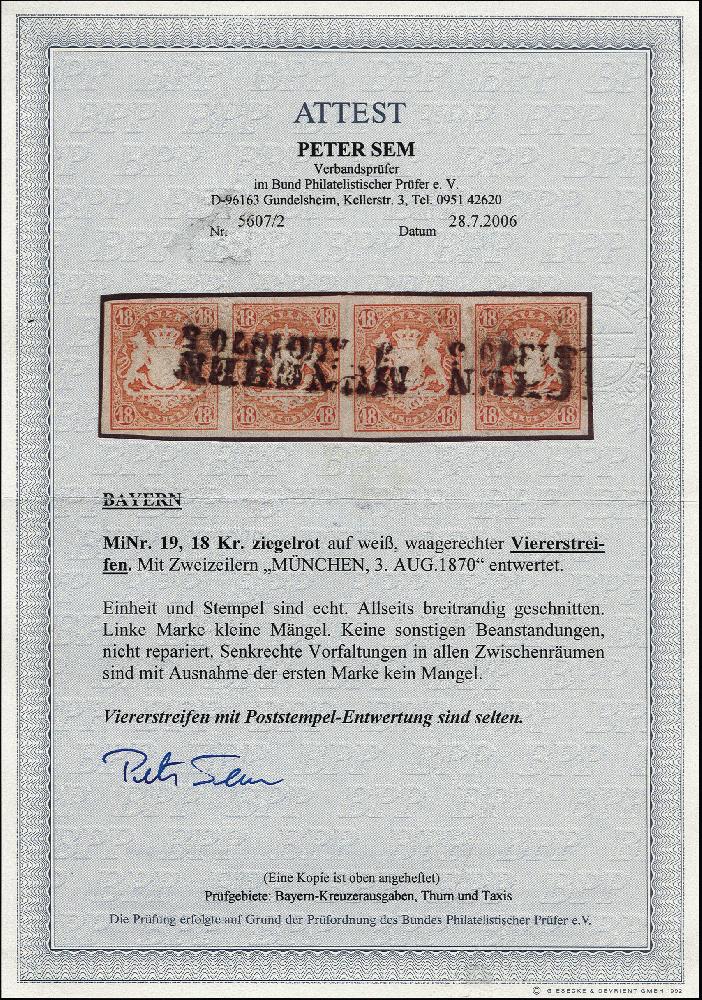 | Prüfer: | Sem, Peter (BPP (Bund Philatelistischer Prüfer)) |