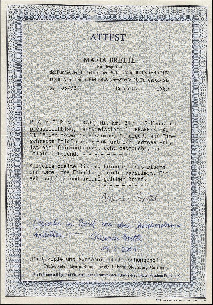 | Prüfer: | Brettl, Maria (BPP (Bund Philatelistischer Prüfer)) |