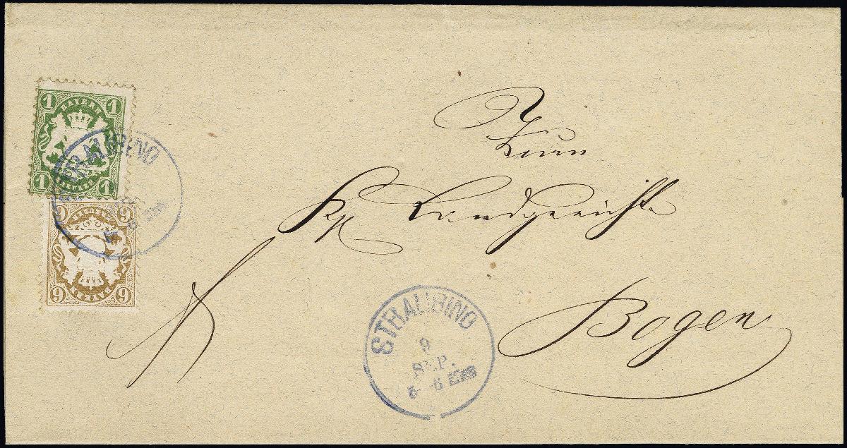 | Zusatzinformationen und Suchstichworte: | 376. Auktion Heinrich Köhler 19.-24. April 2021 Los 7118 1 Kreuzer dunkelgrün und 6 Kreuzer braun mit blauviolettem EKr. "STRAUBING 9 SEP." auf Briefhülle nach Bogen, Fotobefund Sem BPP (2002) Zuschlag 180,00 EUR |