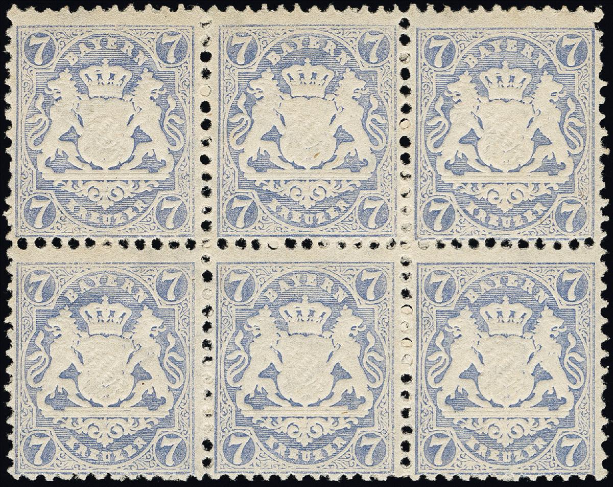 | Zusatzinformationen und Suchstichworte: | 376. Auktion Heinrich Köhler 19.-24. April 2021 Los 7122 7 Kreuzer mattultramarin im waagerechten 6er-Block, farbfrisch und gut gezähnt, die rechte obere Marke mit amtlichem Aufnadelungsloch, postfrisch in sonst einwandfreier Erhaltung, unsigniert (ein Werte kleine Bleistiftzahl), Fotoattest Brettl BPP (2001) Zuschlag 1.000,00 EUR |